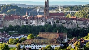 من موقع مذهل يبرز الممر الضيق الذي يقسم المدينة إلى جزأين. فريبورغ بالتأكيد مدينة مميزة للغاية، وتضم عددا من المناظر الطبيعية الرائعة. يرتفع الجسران الرائعان فوق نهر سامارا، وينضمان إلى الجزء الغربي الناطق باللغة الفرنسية من المدينة مع الجزء الشرقي الذي يتحدث الألمانية. بهذه المدينة توجد مدينة قديمة رائعة من العصور الوسطى، مع كاتدرائية رائعة. بالإضافة إلى بعض المتاحف المثيرة للإهتمام، وتحصينات مثيرة للإعجاب، والهندسة المعمارية الجميلة.